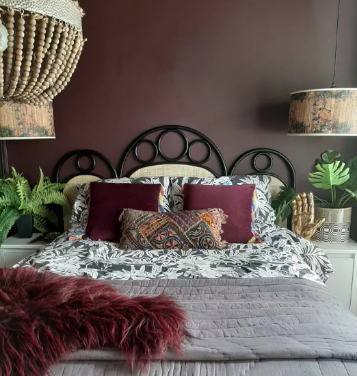 Texture is key here. Mix linen, velvet, and faux leather, toss in patterned throw pillows, maybe even a few dark feathers or dried botanicals for that earthy touch. Add rattan or dark wood pieces to keep it grounded, and warm lighting through amber glass or woven pendants to give the whole room a smoky, sensual glow. This is the perfect look for someone who loves boho spirit with an edge.