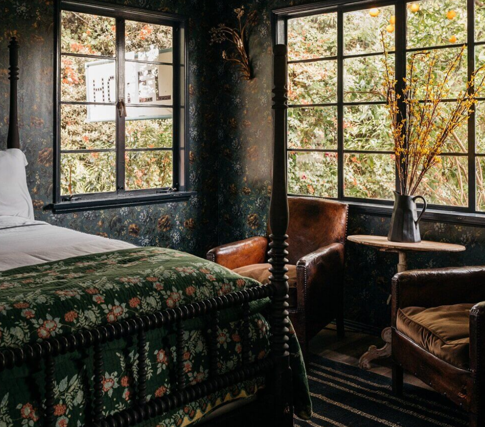 Bold and a bit mysterious, moody floral wallpaper brings an artistic, vintage energy to the room that’s both soft and sultry. Oversized blooms in shades like wine, navy, and charcoal seem to bloom right off the walls, giving the space a sense of depth and quiet drama. Paired with dark wood furniture—think an antique armoire, carved nightstands, or a mahogany bed frame—you create a space that feels curated, personal, and steeped in a story.