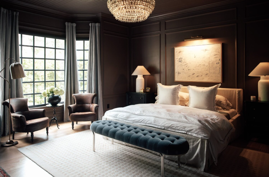 This palette is wonderfully versatile. You can add hints of gold or brass in lighting or decor to elevate the look, or bring in soft textiles like silk and velvet for a rich contrast. The result is a balanced, chic space where dark and light play off each other beautifully, making the bedroom feel both powerful and inviting.