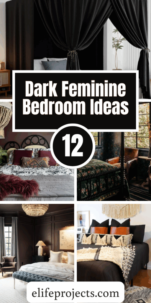 This combo invites layering with plush textiles in muted tones like mauve, cream, or soft black. Adding a few textured throw pillows and a velvet bench brings softness to the space, while minimalist art or geometric patterns keep it contemporary. It’s a chic, subtle approach to dark feminine style that feels both inviting and fashion-forward.