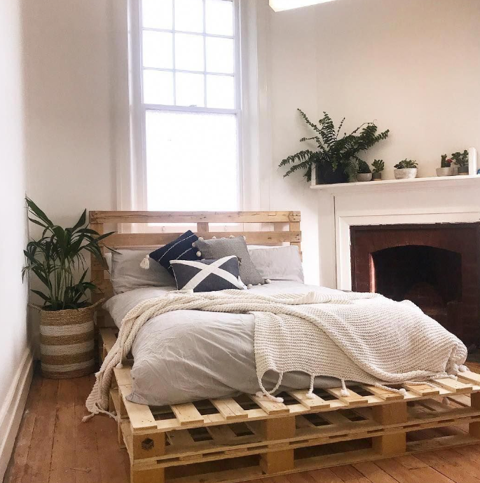 A double-layer pallet bed takes things to the next level, offering additional height and a more luxurious feel. The stacked pallets create a bold, elevated platform that gives the bed a distinctive, architectural look. Not only does this design add a sense of drama and sophistication to the room, but it also provides extra space beneath the bed, which can be used for storage or simply left open to keep the room feeling airier.