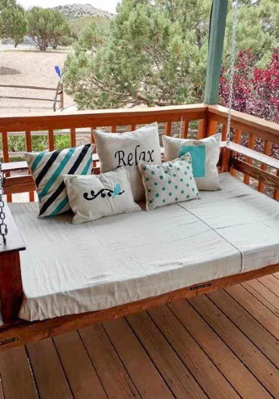 To protect the pallets from the elements, consider sealing them with weatherproof treatments. Add some large, comfy pillows and a throw blanket to complete the cozy, boho-inspired vibe. Whether you’re reading, napping, or just enjoying a peaceful afternoon, this bed creates the perfect space to unwind outside.