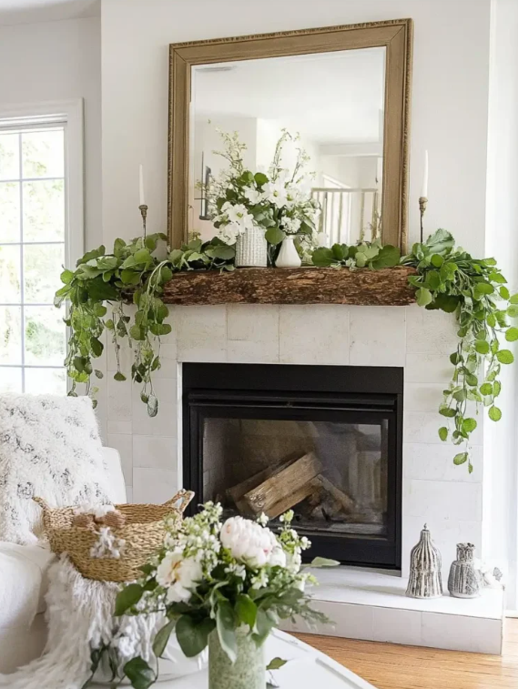 Bringing seasonal greenery and florals onto your fireplace mantle instantly breathes life and freshness into your space. Whether it’s the vibrant blooms of spring, the warm tones of autumn leaves, or the crisp evergreens of winter, using nature’s colors and textures creates a stunning, organic focal point. Mixing in delicate flowers, pinecones, or berries adds variety and a sense of the current season’s unique charm. These natural accents not only soften the mantle but also invite a welcoming and calming atmosphere into your room.
