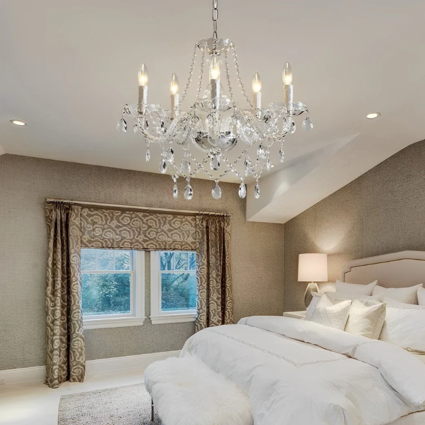 A chandelier feels right at home in a traditional bedroom, especially when surrounded by antique furniture and soft textures. The contrast of delicate detailing and functional design gives it a kind of artistry that modern fixtures just can’t match. Hung above a bed or in the center of the room, it becomes a beautiful blend of practicality and poetry.